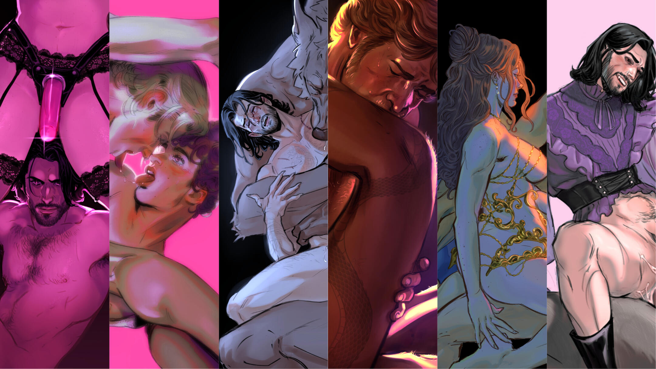 starting from €300 (2 characters)One-page composition of little erotic scenes, up to 5 panels (1 in a soft shaded style, the others in greyscale/mono).